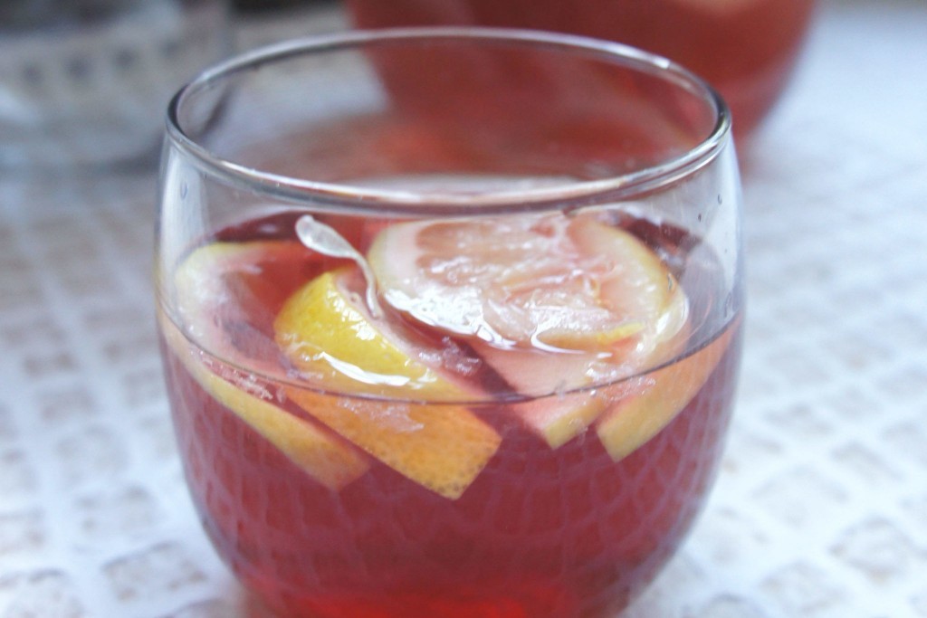 - Place sliced apple and lemons in a sealable container. Add 1/2 cup pomegranate juice, 1/2 cup wine and vodka (optional). Allow to sit overnight in the fridge.