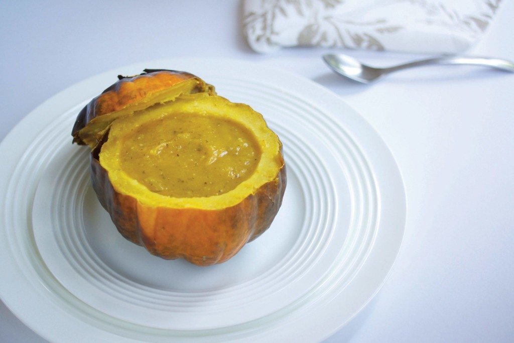 I like to roast my squash whole and scoop out the insides for this soup. If you aren’t a fan of squash or don’t have any in the house, replace it with sweet potato. It will have the same feel and a similar taste. Add a little chili powder to this soup for an extra kick.
