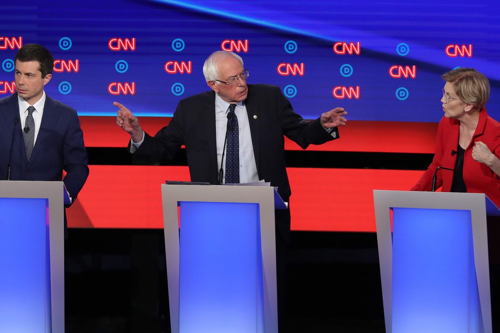 Sanders, the first Jewish candidate to win major-party nominating contests when he ran for the nomination in 2016, pushed back hard at the moderates who said his favored programs — particularly “Medicare for all,” which would extend the free health care available to the elderly to the entire population — were unrealistic.