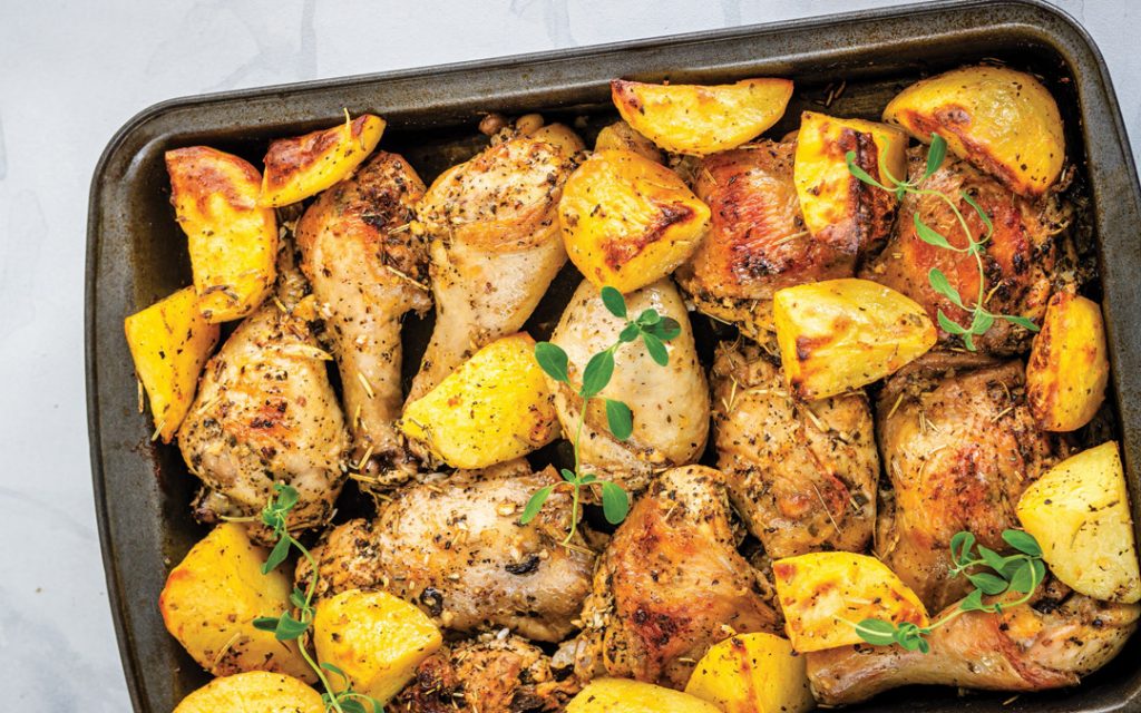 - Heat oven to 425 degrees. Spray 18x13-inch rimmed sheet pan with non-stick cooking spray. Spread out sliced fennel, sweet onion, garlic, carrots, potatoes and sliced lemon in one layer on the sheet pan. Drizzle with 1-2 tablespoons of olive oil and season with minced rosemary, salt and pepper. Squeeze the juice of half of a lemon over vegetables. Toss vegetables with hands to combine and spread out evenly on the sheet pan.