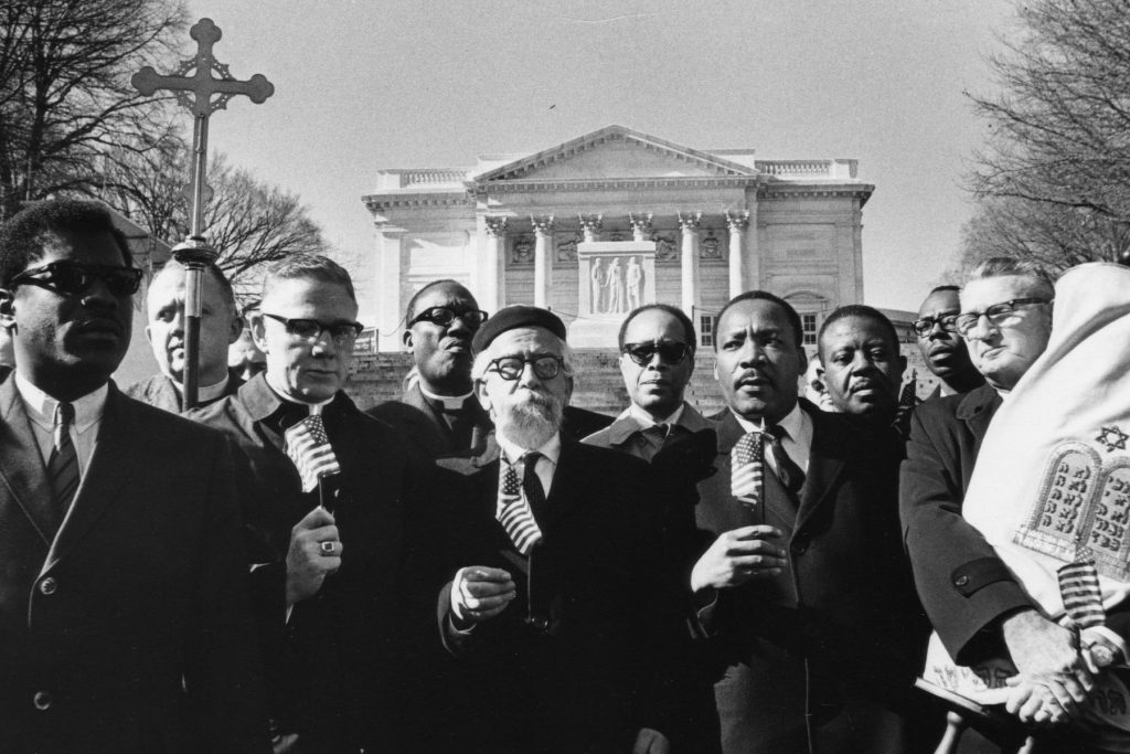 (Left to right) Bishop James Patrick Shannon, Rabbi Abraham Joshua Heschel, Dr. Martin Luther King Jr. and Rabbi Maurice Eisendrath lead a protest in front of the Tomb of the Unknown Soldier at Arlington Cemetery in February of 1968. (File photo, Charles Del Vecchio/Washington Post/Getty Images)