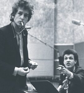 Bob Dylan (left) is shown here with the late Jewish blues guitarist Michael Bloomfield in 1965.