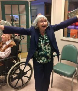 Wrote her family: “Though age slowed her down, even until the end, she had a great zest for life and natural capacity to play and have fun. She attended all of her grandchildren’s weddings and would steal the show by dancing the Hora well into her 90s. In her last year, she began to speak more Hebrew and even began singing some of her responses. Her smile would still light up a room.”