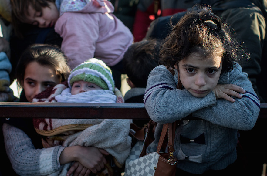 A young girl waiting in line to pass through a border gate as a small number of Syrian refugees are allowed to return to Syria at the closed Turkish border gate in Killis, Feb. 8, 2016. (Chris McGrath/Getty Images)