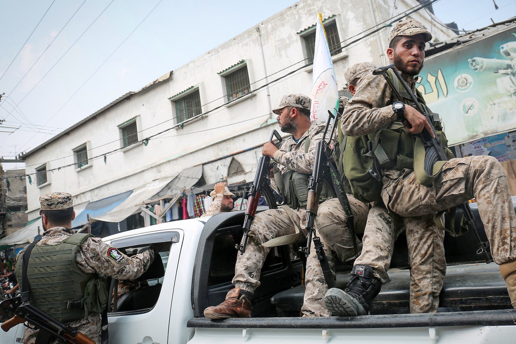 In 2017, Hamas militants attend the funeral of Nidal al-Jaafari in Rafah in the southern Gaza Strip. Nidal al-Jaafari died after a suicide bomber exploded near Hamas militants in the southern Gaza, in what appears to have been an ISIS attack against Hamas forces. (Photo by Abed Rahim Khatib/Flash90)