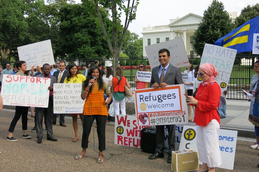 Refugees, advocates, and faith leaders rally in front of the White House to call for refugee protections on World Refugee Day. June 20, 2017. (Photo courtesy of HIAS)